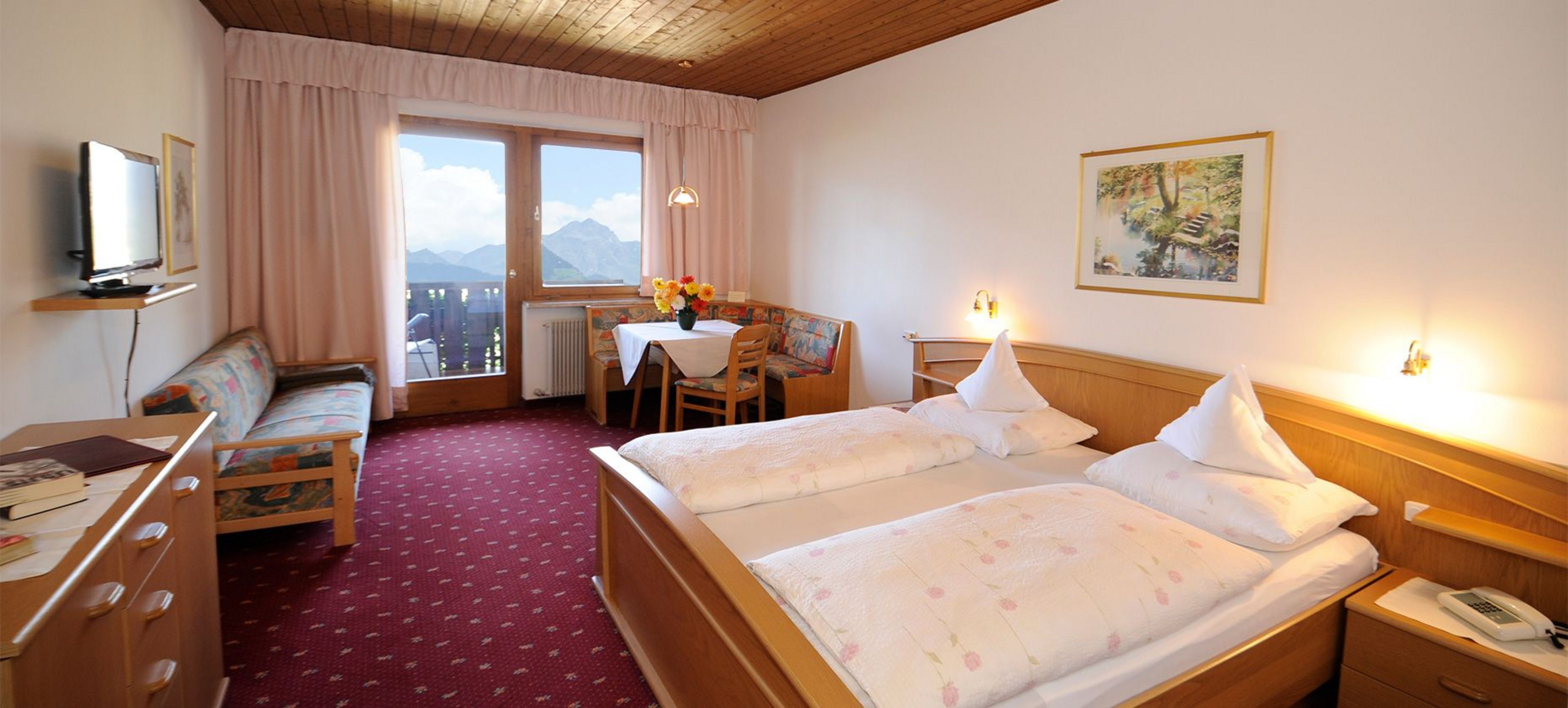 Le nostre accoglienti camere e gli appartamenti arredati individualmente offrono un'atmosfera confortevole con dettagli curati. Godetevi la splendida vista dal balcone sulla città di Merano e sul Gruppo di Tessa.